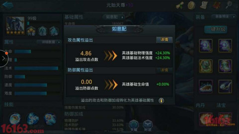 如意配其实就是将玩家溢出的属性,按一定的比例转为玩家的基础强度,请注意,这里提及的是基础强度,所谓的基础强度,就是人物在无装备、周边的加成下的最初始属性,一般来讲,100级的英雄,基础强度为6K,溢出的点数增强的强度大家可以按折算,比方说溢出增幅强度50%,那就是增加了3K强度,这数值看似不多。