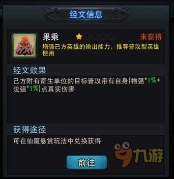 2、新经文果乘上阵,果乘可提升附有寄生单位的英雄普攻伤害,相信大鹏普攻会更高!