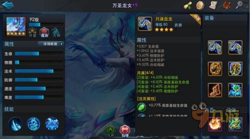 根据龙女在组合中的定位和作用,最适合佩戴月涌套装。物理/法术双防护,增加法术防御和生命值的同时还拥有最重要的一项属性——冷却缩减。整个套装能给龙女带来超过40%的冷却缩减属性,保证在敌方英雄突袭后马上使用第二次冰棺技能。