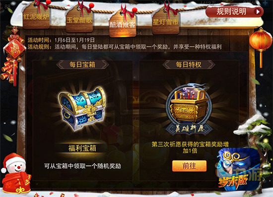 目前正在进行中的福利活动“醅酒飨客”,不仅能让玩家免费开启一个藏有蓝灵石、蓝色装备、蓝色魂印等实用道具的宝箱,同时还会赠予玩家一项随机的特权福利,让玩家在日常玩法中获得额外奖励——譬如蟠桃园玩法给予的个人积分、又或者是英雄试炼玩法的掉落奖励、以及天涯追缉的任务领取次数等等,都在特权福利的奖励范围之内。