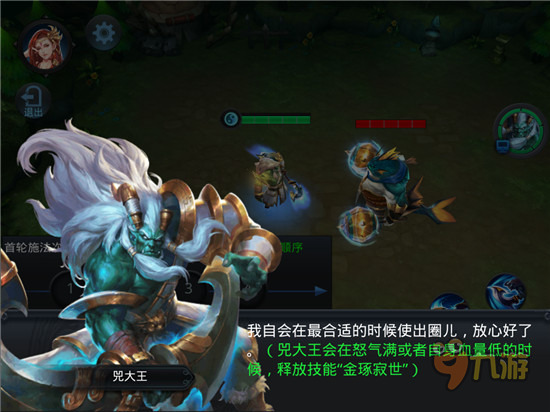 兕大王在实时对战中的能力是目前为止肉盾中最暴力的,满怒气的牛硬的不要不要的,要是再有个魍魉附体,想死都难。玩这个英雄时,跟玩魔王、奎木狼一样记得把智能施法关掉,这时有了冲刺,想打冲人群,想逃跑反向冲,非常灵活。开局不要吝啬嘲讽,在安全的坏境下去嘲讽野怪或小兵积累怒气,半怒以上就可以去干架了,叫上队友一个冲刺,然后嘲讽,等嘲讽时间快过了你的怒气早就满了,接上一个大,你就能控制对手5秒时间,配合经文梵天,敌人想跑都跑不掉,是不是很恐怖!这时你的队友只要不傻,开局之战胜负已定。即使逆风,被迫守塔的情况,我们可以跟玩奎木狼一样,进入人群,反向冲刺,把敌人全部拽到塔里,然后一个嘲讽加大招,配合队友和防御塔,想翻盘也并非难事!
