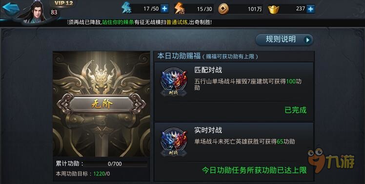 每日任务获得功勋260。 匹配对战、时时对战、六人对战获得功勋350