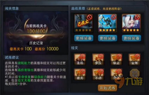 3、上阵英雄不需要堆积血量,因为回血比例是根据造成伤害多少决定,只要掌握好节奏,不出现失误,那么自保问题不大。(因为无需堆积血量,因此前述未推荐转轮、妙觉经文);