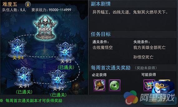 《乱斗西游2》此次推出的实时副本玩法,共设五个难度,每个难度由当局者迷、默然相互、九死一生、肝胆相照、豁然开朗五道小关卡组成,系统根据玩家的不同战力设定关卡难度,小白高玩都有实力匹配的小天地。无论个人战力有多高,大家都必须通力协作方能通关。作为奖励,玩家每通过一段关卡,都能领取一笔丰厚的通关奖励。