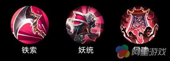 旱魃的核心技能是附带牵引效果的“铁索”。当旱魃丢出铁索后,他强悍的身躯就会向铁索丢出的方向发起猛冲,行径路上的所有敌人都会受到波及,被旱魃冲撞至指定位置停下并挤成一团,同时陷入长达1.5秒的晕眩状态。此时,己方的输出型英雄,便可以用范围技能尽情轰炸了。