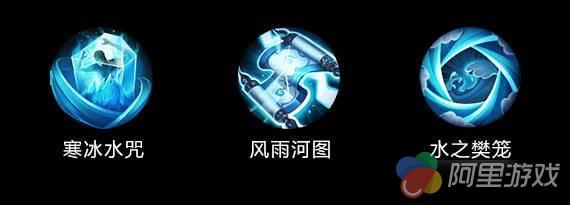 河伯的场控技能名为“寒冰水咒”,其具体效果是先将目标冻结住,再扰乱目标周围的所有敌人,强制他们攻击被冻结目标。此技能相当于施放了一个远程嘲讽,而且受到攻击的目标还不是河伯本体,在PVP的团战中十分好用。大招“水之樊笼”的效果也与之相似,即作用于单一目标后再影响周围全部敌人,区别在于大招的伤害更高、范围更大,同时令敌人陷入较长时间的减速状态。