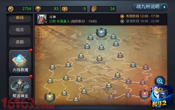和传统竞技玩法不同的是,战九州是一项三方博弈玩法,其涉及到的27个据点攻防战,会因为帮派战略的调整而变幻莫测。但无论是孙刘抗曹三方鼎立之局,还是强秦崛起气吞山河之局,都有赖于帮派管理层对参战人员下达及时、有效、清晰的战斗指令。