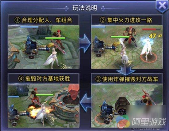 领土战开始后,双方各自出生在自己基地内,可由上下两路进攻或防守。双方可以利用炮车进行进攻造成大量伤害,场地上还会有炸药桶,可使用炸弹桶摧毁对方炮车。在道路中间还有野外据点,占领后能获得额外炮车。咱们也是有炮又有车的人了,一言不合就把炸药桶丢过去,公会的其他伙伴负责掩护,因为在举起炸药桶的时候角色是无法进行攻击或者释放技能的,只能移动和向目标扔出炸药桶。公会的兄弟携手,领土我有!