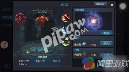属性:升到三阶后带来的属性加成为生命+5232,攻击+523,物防+261,法防+261