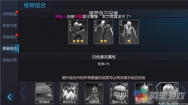 随着摇摆怪的出现,图鉴中也新增了三张摇摆图鉴,分别是狂暴摇摆、金刚摇摆和摇柏。收集到三张图鉴可以激活“葫芦岛三兄弟”图鉴套,获取生命属性加成。