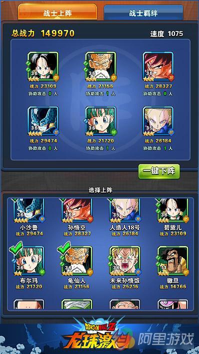 为了保护治疗则加入龟仙人放在前排,如果玩家拥有天津饭也可以进行替换,不过龟仙人和人造人18号有协击关系,最好还是不要替换的。