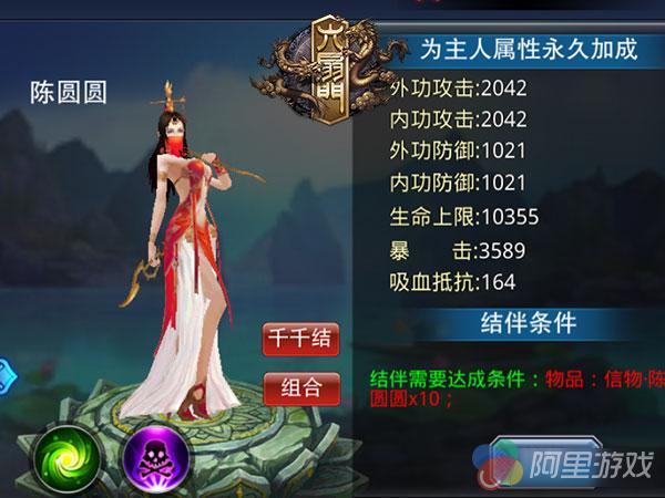 少侠结伴陈圆圆的条件,需要信物.陈圆圆×10。结伴后,就能与之共赴战场。