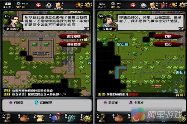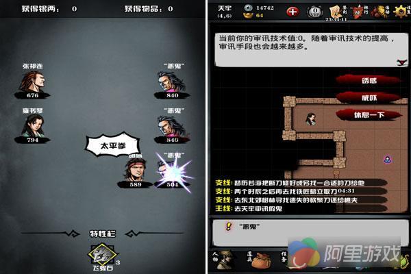 不过可千万不能因为这种简单的画风就放弃这款游戏,因为这样你可能就要错过一个江湖小虾米如何在血雨腥风的江湖中生存的故事了。在这个故事中,玩家的任务不再是无脑打怪,而是要为我们选定的角色做各种各样的决定。游戏会围绕着六扇门的故事展开,同时加入《笑傲江湖》的部分剧情。此时玩家就会接到许多相关的NPC发来的任务,而在做任务的过程中,也会不断有新的伙伴加入队伍。当然这些任务不是单一的打怪,作为一名捕快,在恶势力面前是伸张正义还是袖手旁观,甚至还需要亲自审问犯人,至于怎么选择,全都由玩家决定。此外,游戏中还有许多需要收集合成才能完成的任务,这就需要根据提示去采矿挖草或者去解开NPC设置的种种谜题。