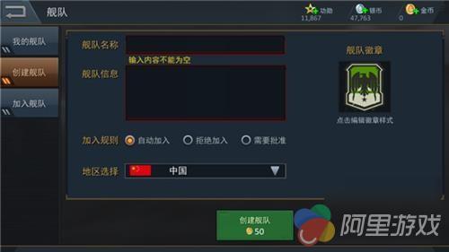 当然,玩儿《雷霆海战》的朋友之中从来都不乏热血澎湃之辈,不想加入他人的舰队,而是在达到舰队系统等级门槛之后,便花费50金币创建属于自己舰队的朋友也是大有人在。相比于加入其它舰队而言,创建舰队不仅需要填写舰队各种信息并花费金币,招兵买马也是同样的重中之重。