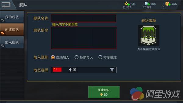 当然,玩儿《雷霆海战》的朋友之中从来都不乏热血澎湃之辈,不想加入他人的舰队,而是在达到舰队系统等级门槛之后,便花费50金币创建属于自己舰队的朋友也是大有人在。相比于加入其它舰队而言,创建舰队不仅需要填写舰队各种信息并花费金币,招兵买马也是同样的重中之重。