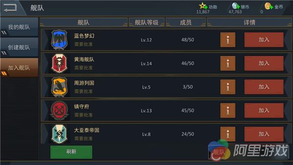 打开舰队列表,寻找自己心仪的舰队以求加入,是大多数刚刚达到舰队系统等级门槛的舰长们会选择的内容。在“加入舰队”页签中,咱们能够看到当前服务器内所有舰队的状态,包括了舰队名称、舰队徽章、舰队等级、舰队成员数等参数,只需要点击加入按键,在等待舰队司令批准后即可加入舰队。