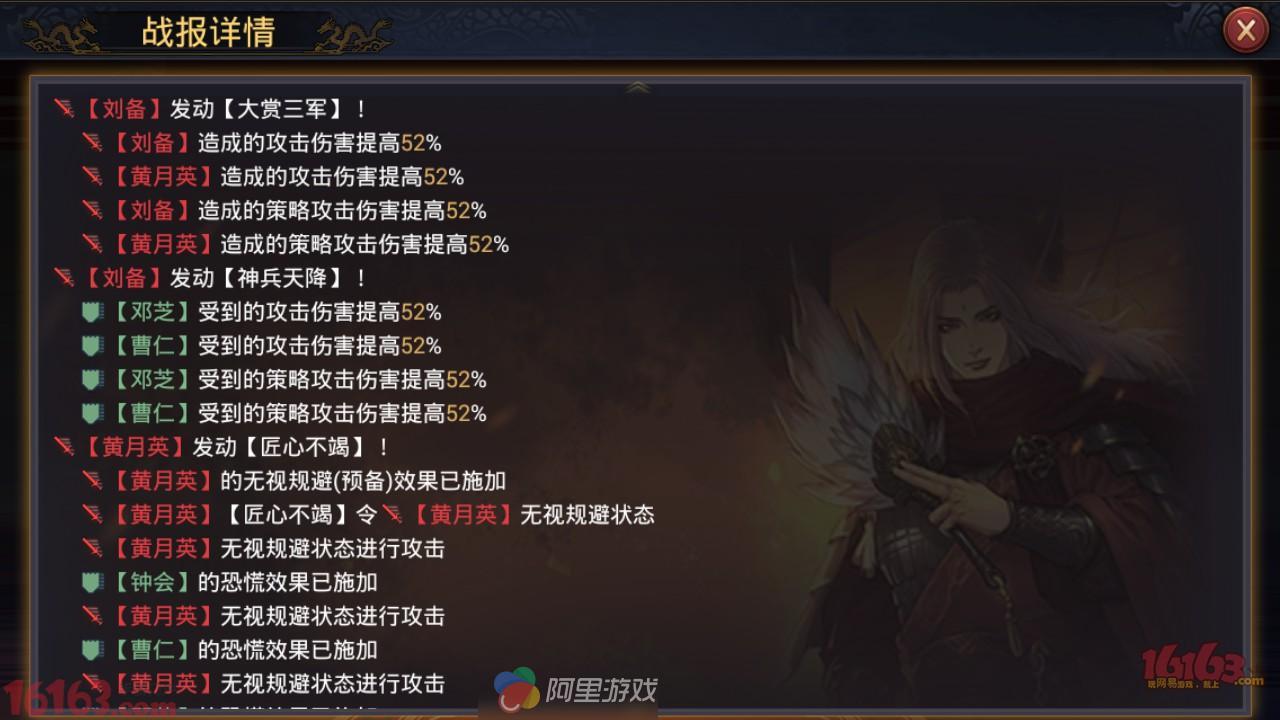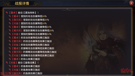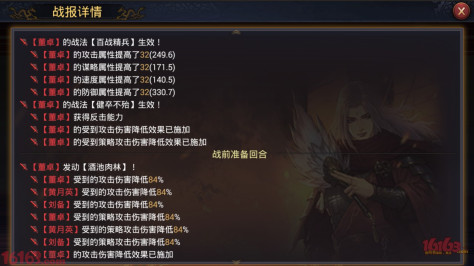 从战报中可以看到,汉董卓首先发动酒池肉林,超高的速度使得他甚至能够比一些速度低的骑兵都先出手,那么只要对方携带无心恋战,白刃之类降低我方策略攻击的指挥战法的武将,速度比我方汉董卓低,那么其效果不论加到我方哪个武将身上,也会被酒池肉林自身的第三回合我军全体造成的所有伤害大幅度降低的效果覆盖,也就是说,你们的无心恋战啊,白刃啊,神马的,都狗带了!而我方刘备发动的神兵天将,大赏三军之后,黄月英才发动匠心,那么匠心不竭受到的增持效果就可以覆盖全场8回合了。