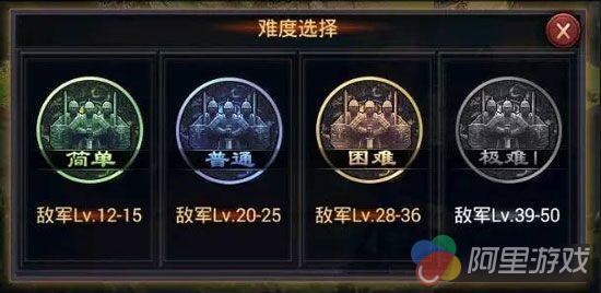 分类:自由演武分为简单、普通、困难、极难(天下大势“十八路诸侯”完成后,还会开启极难II)多种模式,随着难度的提升,奖励的资源量越大。