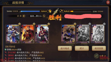 这里王异的位置也可以放在中军。三个长弓兵必然可以打出一轮输出,大赏神兵配合先驱鹤翼,一回合就可以把对面打的半残,再加上吕蒙第三回合的固定伤害,在加成之下也是爆炸,基本三回合解决对手。