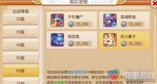 达到65级的玩家可以到挂机场景地狱迷宫中捕捉,或者到商店中购买新宠物。