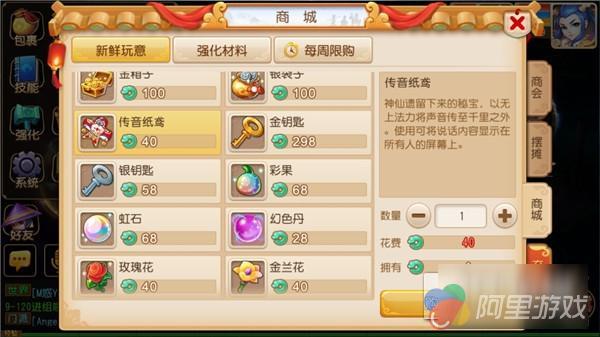 每一个玩家都可以在商城的“新鲜玩意”中,购买到道具“传音纸鸢”。通过传音纸鸢,玩家就可以将自己说话的内容(最多50个字)显示在自身服务器所有玩家的屏幕之上。无论是柔情蜜语,还是拉票宣言,玩家都可以通过这一玩法,让全服玩家为自己见证。