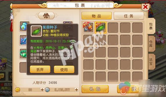2.拿到种子以后到长安城、宝象国等场景种下种子,然后叫好友或者其他玩家来给你的种子浇水。