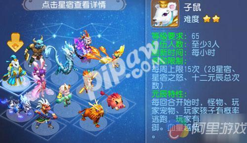 建邺城、长寿村、宝象国、两界山、花果山、大雪山、傲来渔港随机3个地点刷新,玩家一周可以打多次十二元辰,但是只有15次可以获得奖励,其他只能给侠义值。