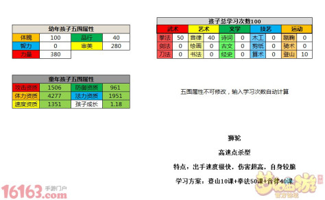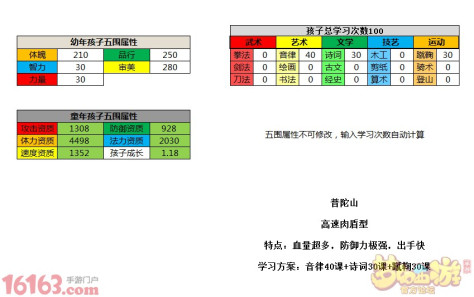 然后附上官方推荐的全门派孩子养成方案得出的模拟计算属性图!