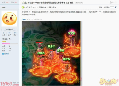 接着我们看论坛的一位朋友的598治疗量,攻法修炼22级,103级推气过宫的治疗图,并套公式分析数据。
