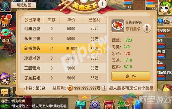 3.食材材料是全帮派共享,大家可以根据需求进行分配安排,就是选择做哪个菜。