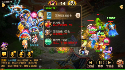 紫气9回合想点掉方寸没成功,直接让其丢出罗汉。