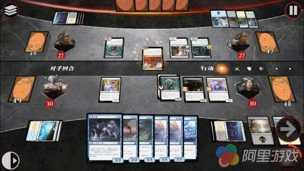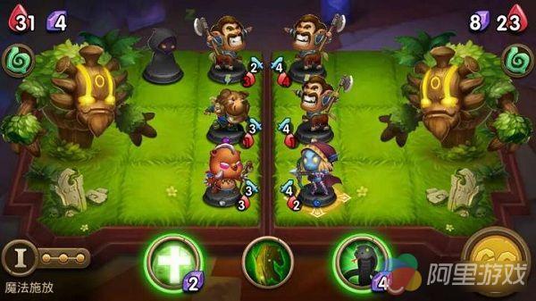 不同于以往的卡牌手游的传统回合制玩法,《魔法卡牌大师移动版》采用了类似与“石头剪子布”的同时决断模式。同样是回合制,但再没有先手优势和见招拆招,更多的则是对自己的卡牌策略的思考和对对手出招的预判。而战棋要素的增加,也进一步为游戏融入了排兵布阵的要素,给予了玩家更多的策略空间。