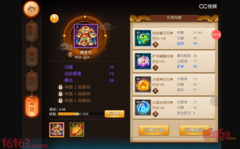 活动,神器副本,商城都可以获得未鉴定的元神,消耗对应等级的鉴定符即可鉴定使用(每个元神都有三条属性)。