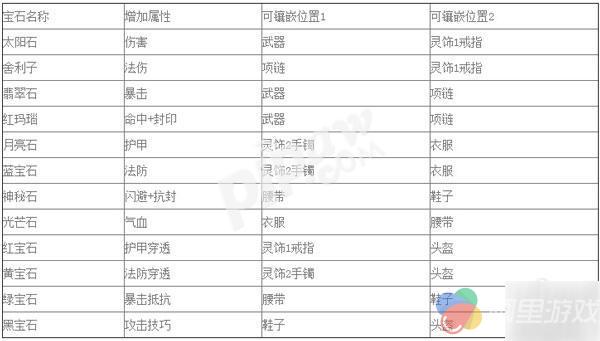 从上面可以看出来,并不是所有的装备都可以镶嵌所有的宝石,比如武器只能镶嵌太阳石、翡翠石和红玛瑙。宝石的等级越高,对装备的加成效果越好。