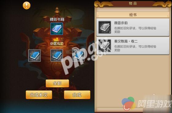 所以越高级的金书获得的方式越难,不过合成经书是100%成功的,高级经书获得的经验要多很多,建议玩家优先合成,前期使用低级经书不要浪费每日的次数即可。花钱党最好不要错过购买每日优惠大礼包和每周精选礼包。