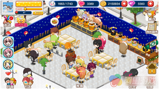 作为一款模拟经营类游戏(SIM),《餐厅萌物语》具备了传统SIM的一切要素。玩家需要悉心照料自己的餐厅,烹饪料理、招揽顾客、雇佣店员、布置店面,虽无需太过费心,却也不能放置不管。游戏中有多种装修风格可供选择,包括了中式、欧式、日式等等,很大程度上解决了玩家众口难调的难题,让所有人都能设计出自己喜欢的样式。