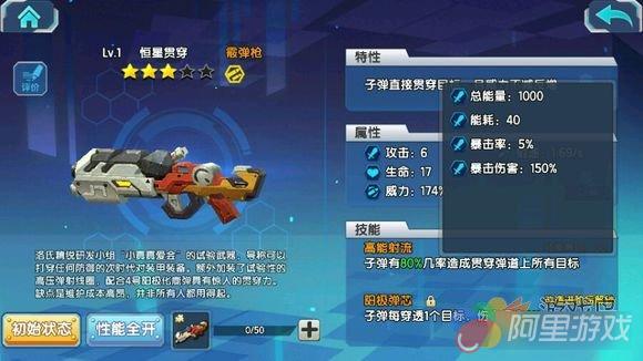 1技能:子弹有80%→100%几率穿透目标。这个技能使这把武器有很好的清场能力。