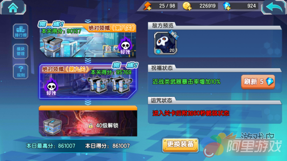 祝福状态:可消耗5钻石刷新,有最高全武器30%伤害加成等