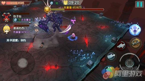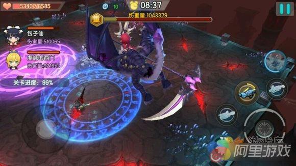 boss挥舞巨大的紫色镰刀,可能释放“弧形斩”或者“范围冲锋”技能。这两个技能的实际判定范围都比boss的模型要大一圈,是主要灭团技能。