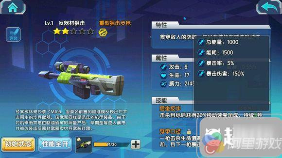 3.总能量:1000→1000(本武器是重狙中唯一能量无成长的武器)