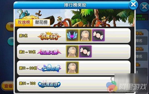 活动期间可通过完成任务“玫瑰花的栽培”获得鲜花,除此之外可以花费钻石为其他玩家献花上榜玩家在活动结束后可获得称号奖励(时限永久),前十名玩家更有酷炫时装奖励。