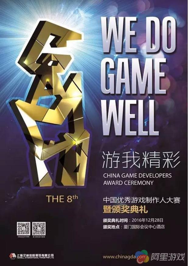 由ChinaJoy主办方汉威公司主办,移动游戏企业家联盟(MGEA)与中国VR\AR娱乐产业联盟(VREIA)联合主办,第1游戏协办的中国游戏行业重要活动,也是国内唯一针对游戏研发领域的评选大赛——第八届中国优秀游戏制作人评选大赛(CGDA)业已启动,并将于2016年12月28日正式举行颁奖典礼。