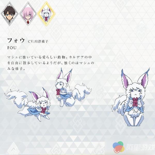 另外,Saber阿尔托莉雅的声优川澄绫子将为宠物角色芙芙配音,米泽円为迦勒底所长奥尔加玛丽配音,铃村健一为罗马尼配音,杉田智和为雷夫教授配音,除了奥尔加的声优有更换之外,目前公布的其他角色声优均和游戏版本相同。