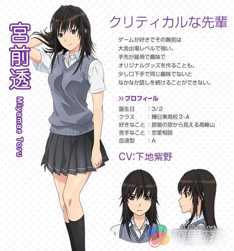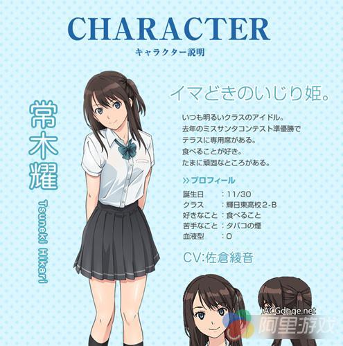 辉日东高中 3 年级 A 班,喜欢游戏有着超高的游戏技巧有着竞技级别的水平,手很灵巧喜欢制作原创周边,但是不善言语只有在谈到游戏的时候可以滔滔不绝