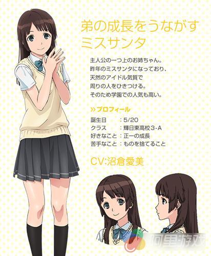 辉日东高中 3 年级 A 班,弟弟成长的重要推手,比自己的弟弟也就是男主角大一岁,居然有天然的偶像气质,在学校中也能吸引很多人。从姐姐身上可以得知男主角叫嘉味田正一,目前是高二学生。