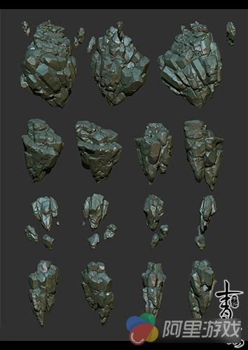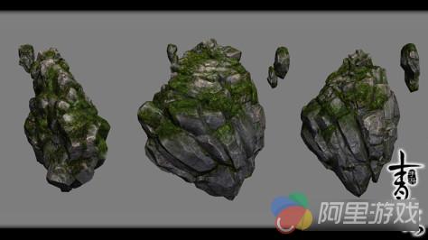 下图中的石块便是基于次世代Retina建模的制作方式打造的,图上可以清晰地看到岩石的肌理轨迹,而岩石上的青苔也栩栩如生。与许多游戏中以平面贴图呈现的模型相比,引入Inferno 3D高清视觉体验后,能将原本立体的岩石显得更加凹凸有质感。在《青云志》手游中,几乎所有的模型都使用了Retina全法线的超清高模制作,并拓扑出准确的Low Polygon,100%高度还原电视剧的剧中场景,让玩家享有沉浸式的游戏体验。