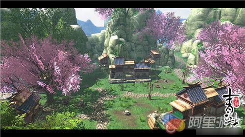 由全法线贴图方法制作的模型比普通建模要更具真实感,从天牢场景中便可见一斑,破碎的地面效果,梁柱上的精致雕刻均栩栩如生。还有河阳城那古朴芳华的场景设计,结合别出心裁的天空设计,两相结合构筑了一方雅逸清幽的人间仙境。
