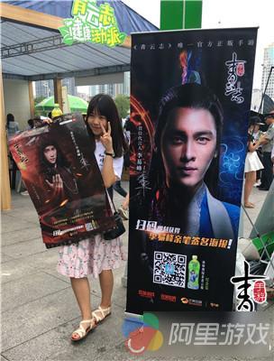 玩家手持《青云志》广州典藏版海报与“峰峰”亲密合影
