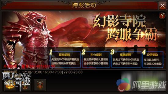 实力的对决,在幻影寺院中,玩家被分为两个阵营,这两个阵营的玩家可以互相PK,但不会增长善恶值。各自阵营的玩家必须在有限的时间内为本阵营争取更多的积分,才能在活动结束时获胜。