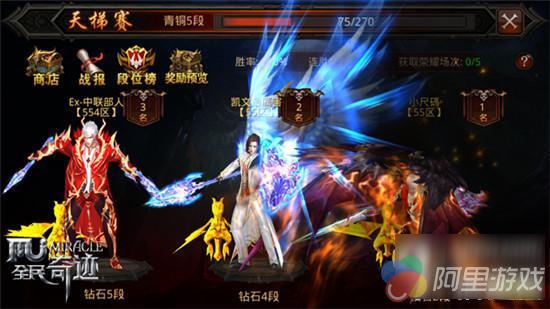 《全民奇迹MU》跨服天梯赛是玩家们能够通自由匹配战斗的跨服战斗体系,玩家可以通过该系统匹配挑战来自所有服务器的小伙伴,与竞技场不同,这里是双方同时在线的自由作战。为了表彰强者,天梯赛系统中划分为青铜、白银、黄金、白金、钻石五个段位,玩家们每日前五场挑战会根据所在段位和胜负获取不定量的荣耀点数。